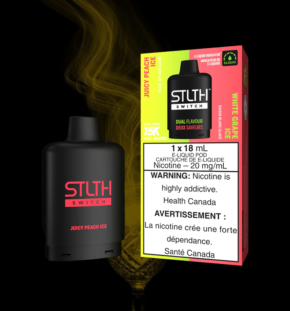 Elevate your vaping experience with the STLTH Switch Dual Flavour Pod, designed for use with the STLTH Loop 2 Device. This innovative pod offers two distinct flavours in a single unit, allowing you to switch between them effortlessly by flipping the pod. With a generous 18mL e-liquid capacity (9mL per flavour) and up to 15,000 puffs, it ensures a long-lasting and flavourful vaping journey.
